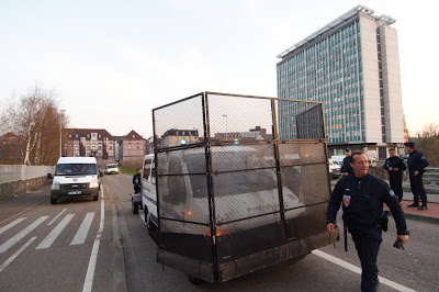 Ce soir, le dispositif de bouclage des zones rouges et oranges est mis en place. Boucliers sur les véhicules, inspection des routes dont la circulation est interrompue. Le déploiement matériel et humain est impressionnant.